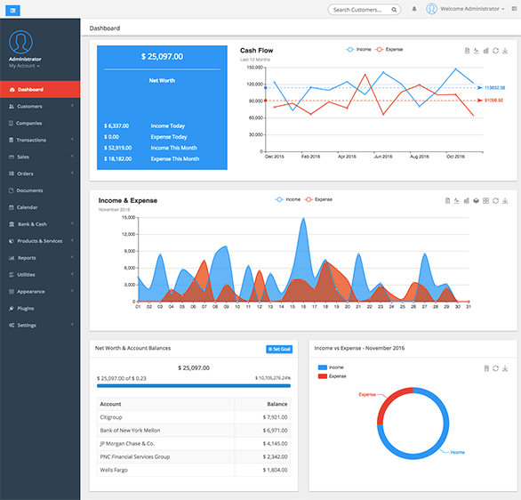 - Accounting Dashboard with daily, monthly Income